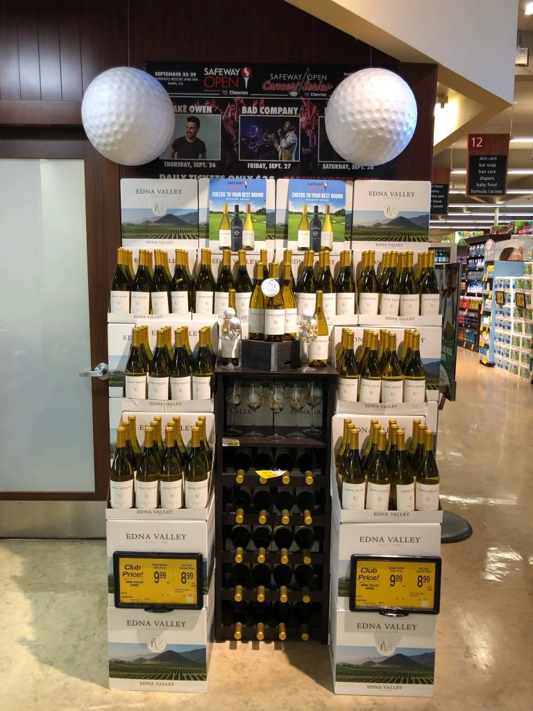 16” polystyrene golf balls were used in this Safeway store displays during the Safeway Open, a PGA tour golf event in Napa Valley, CA. The balls were hung from the ceiling with fishline. The store said the balls worked great and they were very pleased with the results.