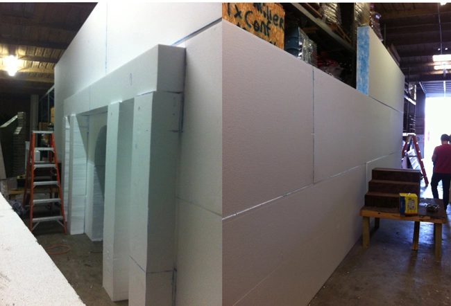 This accomplished artist from Clifton, Texas 76634 designs props and backdrops that are used by a summer camp in Texas. Using 8 foam blocks of 1 lb Virgin EPS foam 9” x 48” x 192” he created this 17’ tall x 32’ long scale replica of the front of the Alamo. The project took about 300 hours to complete. The most difficult part of the project was the details at the columns and carving around the doorway. According to the artist “It was one of the most difficult EPS projects I’ve taken on but all in all it was a lot of fun.”