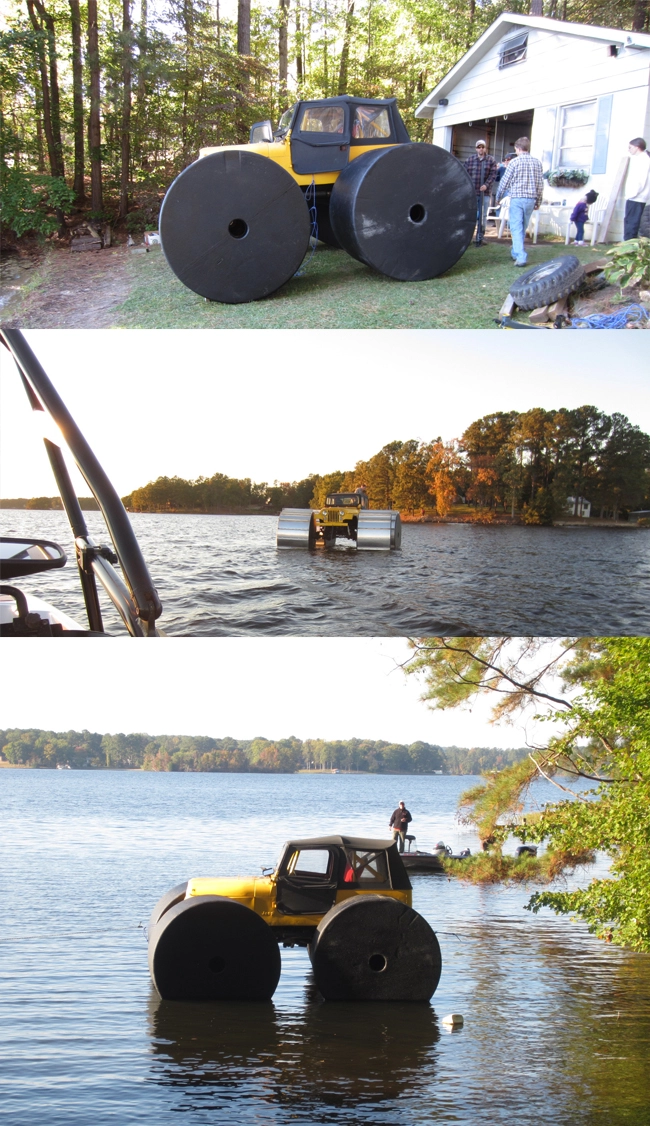 What do you do when you have a jeep, live by the water and have a little too much free time? This is it. Using 1 lb density EPS Universal created 4 giant wheels measuring 72” in diameter x 48” thick for C.H. from Quinton, VA. He did the hard work figuring out how to mount the tires on his jeep and get it in the water. They were coated with Line-X truck bed liner to increase their durability. Next project is figuring out how to make it mover faster than 7 miles per hour.