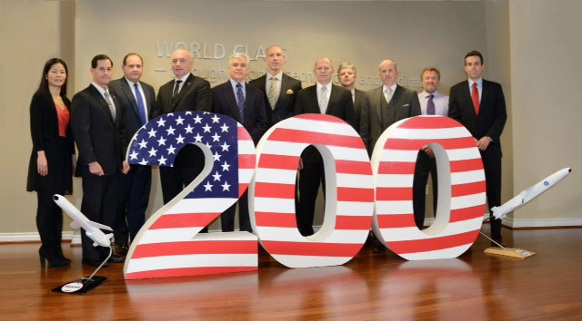 .9 lb virgin EPS Foam numbers were used by the Kongsberg Group to celebrate their 200th Anniversary in Alexandria, VA 22314. The expanded polystyrene numbers had a graphic overlay glued on the top. Each number was 12” thick and 48” high.
