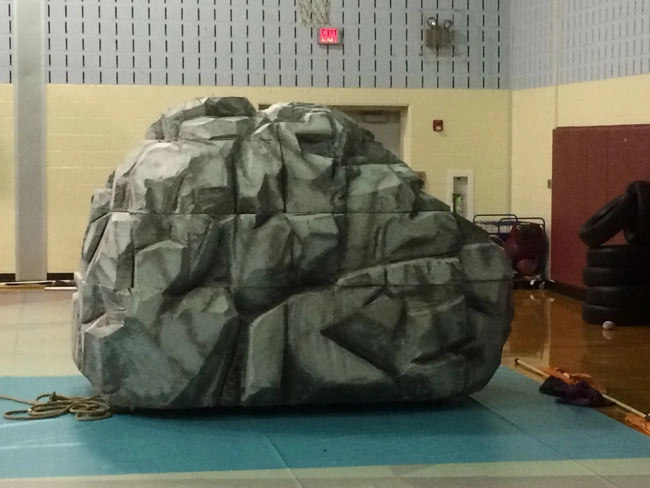 The boulder is currently being used by the Somerville (NJ) High School World Class Indoor Color guard for the 2016 competition season which began in January. The boulder is the primary focus and theme of our show this year and is dramatically dragged across the performance floor in a very theatrical manner.