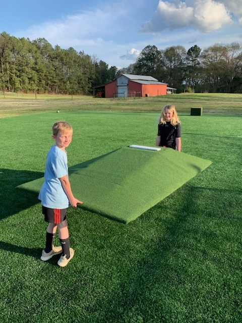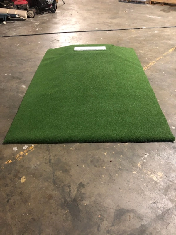This is one of the nicest portable pitcher’s mounds we have seen. Our customer in Peachtree Corners, Georgia purchased both .9 lb and 1.35 lb density expanded polystyrene blocks 10 inch x 30 inch x 60 inch to make portable pitcher’s mounds. He is experimenting with both densities to see which one works best. Using a geofoam hotwire kit and an electric hot knife he shaped the EPS blocks to create the proper slope and dimensions. Next he sprayed the EPS with a durable coating, then covered that with synthetic grass and installed a pitchers rubber. The portable mound is easy to move around and can be used indoors in a gym during the off season.
