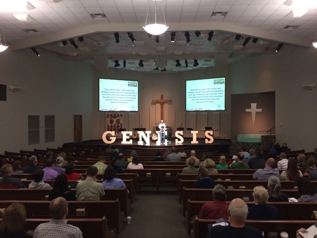 Blocks of 1 lb. EPS 36″ tall x 5″ deep was used to create the word GENESIS for a series of sermons by Franklin Christian Church’s pastor in Franklin, TN.