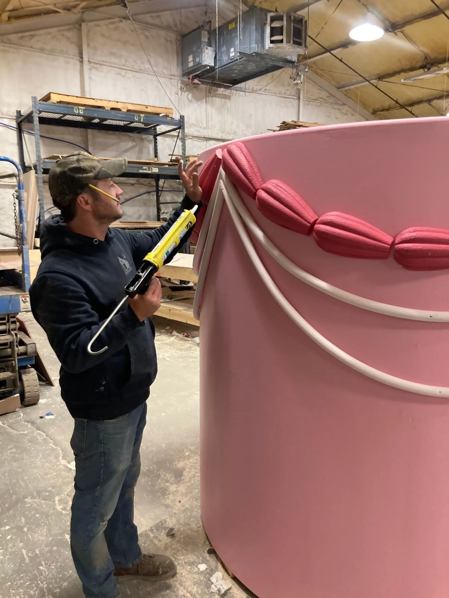 A prop design company based in upstate New York shared these photos from the Hale Centre Theatre’s dazzling production of Beauty and the Beast. During the iconic “Be Our Guest” number, a massive 22-foot-wide pink cake took center stage—featuring custom EPS foam components supplied by Universal foam Products. The decorative foam pieces were CNC-cut to precise "shell frosting" specifications, ensuring a perfect fit and seamless integration. The customer was thrilled with how the elements came together, both visually and structurally, helping bring this whimsical set piece to life.