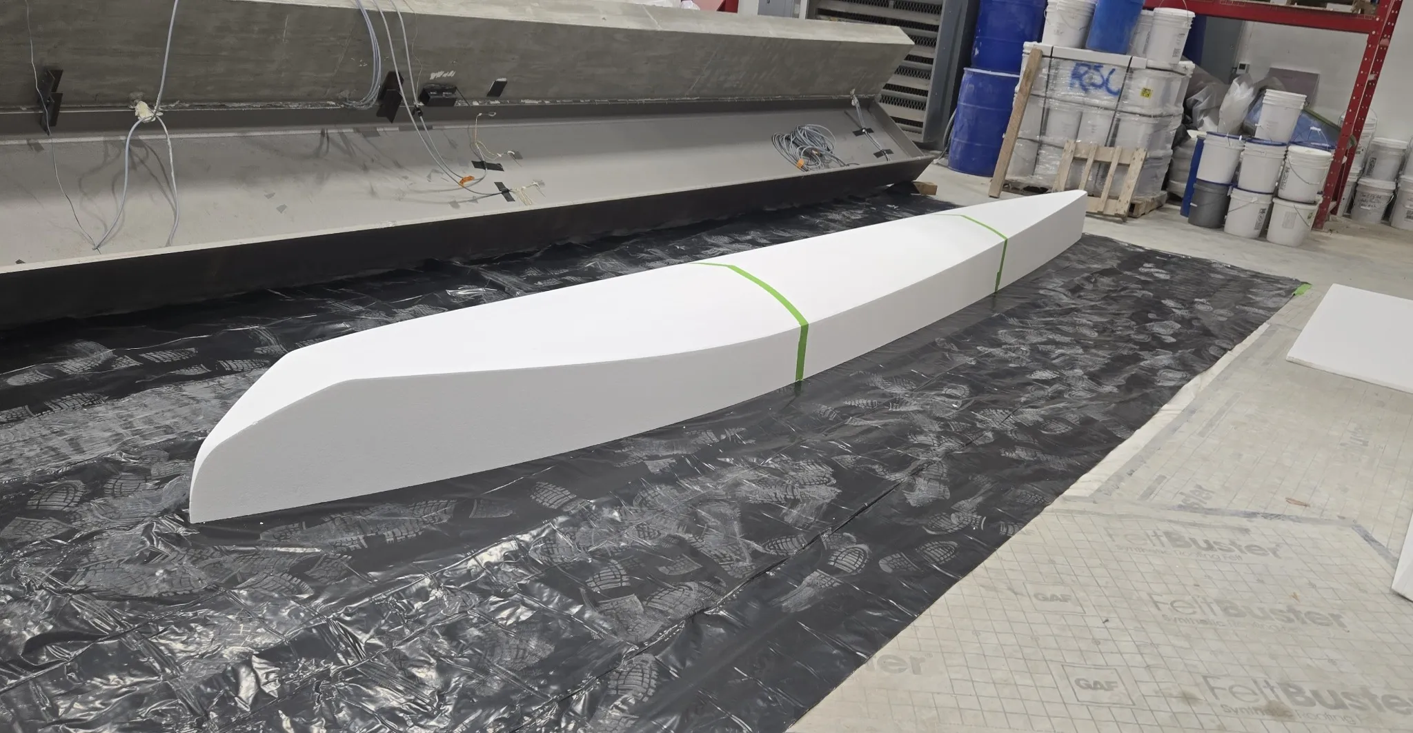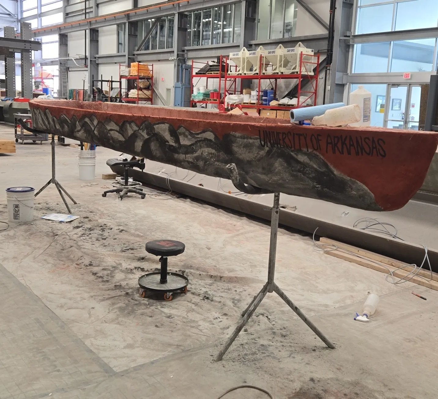 Universal Foam Products was proud to support the University of Arkansas Concrete Canoe Team in the creation of their 2025 canoe, Ozark Horizon. Using the CAD file provided by the team, our specialists precision-cut the canoe mold from 1.35 lb Virgin EPS Foam, ensuring an accurate, smooth foundation for their build.