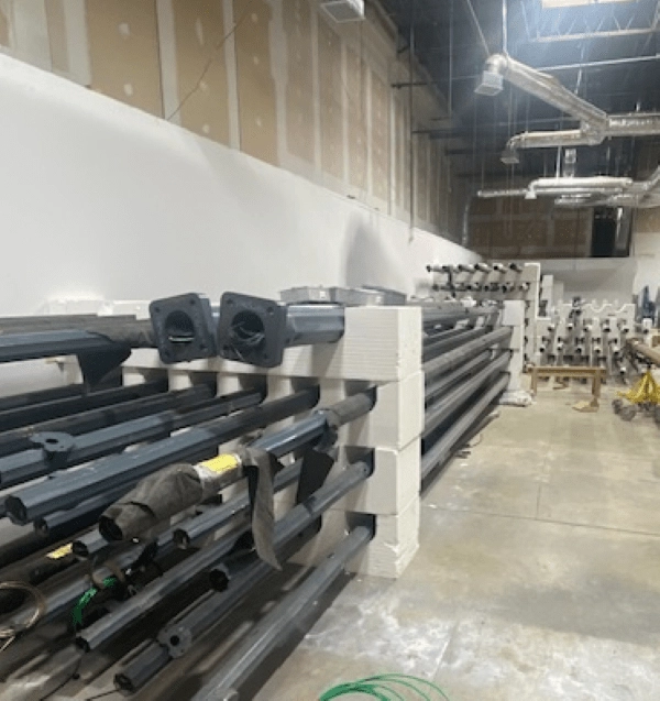This customer just outside of Baltimore, MD uses custom Expanded Polystyrene Foam packaging to efficiently stack, store, and arrange their metal street light poles. The utilization of Expanded Polystyrene Foam, known for its lightweight yet sturdy properties, ensures the safekeeping of newly received poles as well as those prepared for preconstruction. This innovative packaging system not only enhances the organization of their warehouse but also optimizes the utilization of warehouse floor space. Expanded Polystyrene Foam packaging, with its excellent protective qualities, can play a pivotal role in the safeguarding of any valuable inventory.