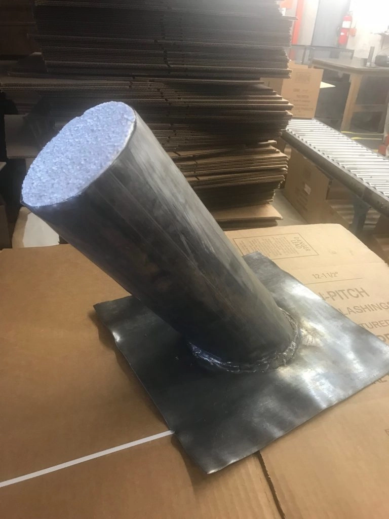 Our customer in Lake Placid, Florida manufactures lead roof flashing and needed an insert to keep the vent pipe flashing round in transit. Since all the pipe flashing pieces were the same diameter but varied in length, Universal Foam Products provided EPS cylinders that were 2-5/8″ in diameter and 120″ long so they could be easily cut to length for each piece. A very lightweight EPS with recycled content was used to keep the cost as low as possible. The Foam is easily cut to the required length with a knife or hand saw.