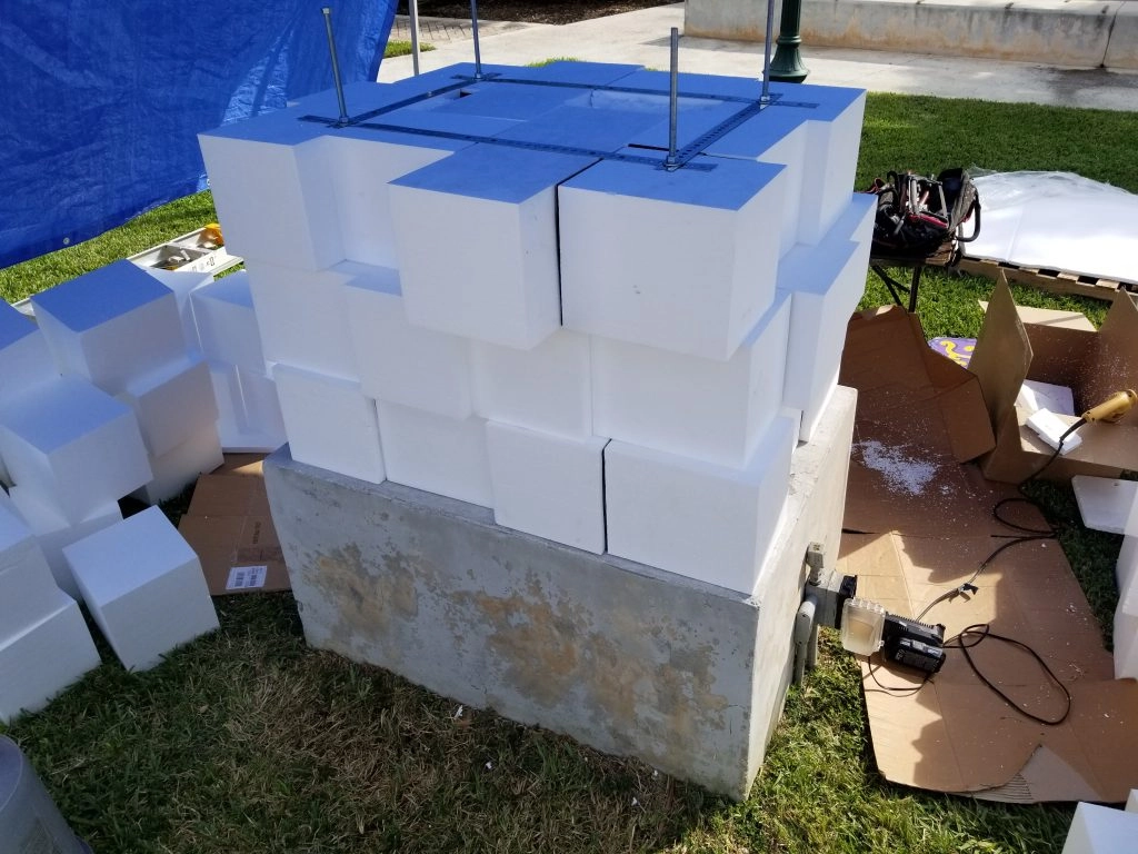 80 blocks of 2 lb density EPS 8” x 8” x 16” were used as the foundation for this art project in south Florida.