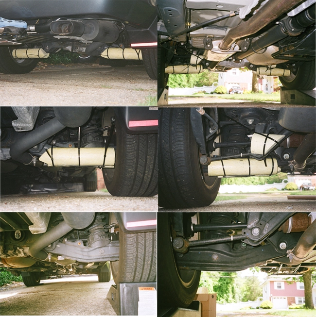 Note that the Foam does not obstruct lower access for normal service station vehicle lift up. The three to two cable ties per piece can be easily cut to remove if ever necessary and the undamaged pieces can be adding on again with new cable ties. Custom signs can be applied over or on the Foam pieces for whatever your pleasure, safety conscience, etc… I intend to add TaleG8r signs with reflective letters visible from behind at night by other drivers.