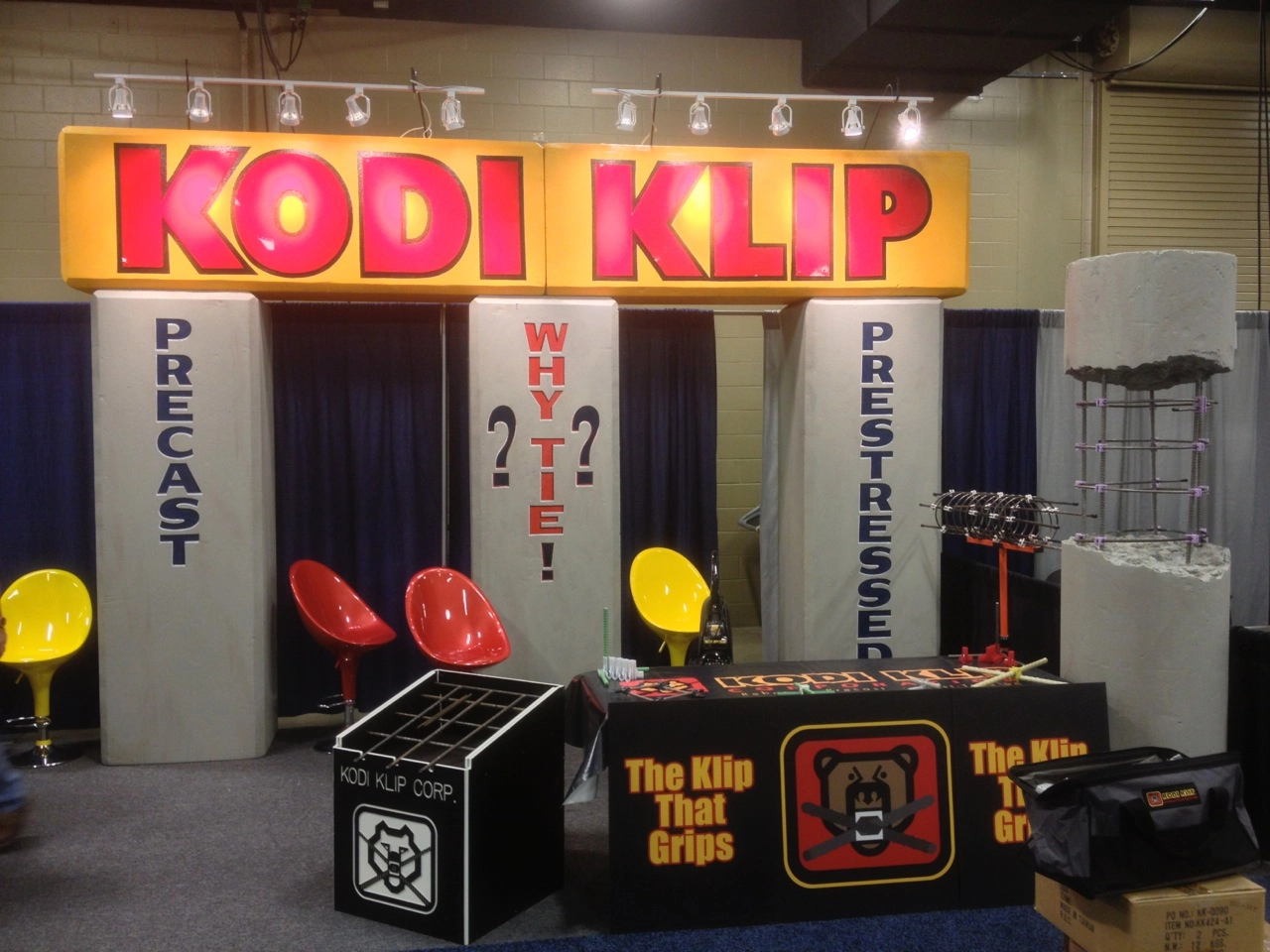 .9 lb. density EPS blocks 24” x 24” x 96” are used to simulate precast concrete blocks for this trade show booth for Kodi Klips, a manufacturer of high quality rebar connectors. After the white EPS blocks are painted with gray latex paint they look exactly like concrete. Show attendees can’t believe they aren’t real.