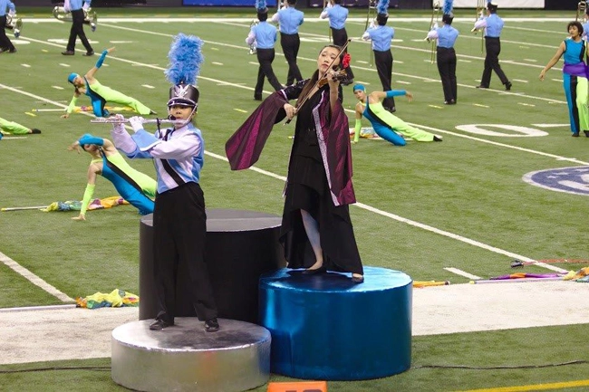 Valley Christian School in San Jose California used 2 lb density EPS cylinders to create raised platforms for their solo musicians. This year they went to Indianapolis for the Bands of America Grand Championships and took the 42” diameter cylinders with them. The three cylinders are 12”, 24” and 36” thick and are covered with a Mylar fabric.