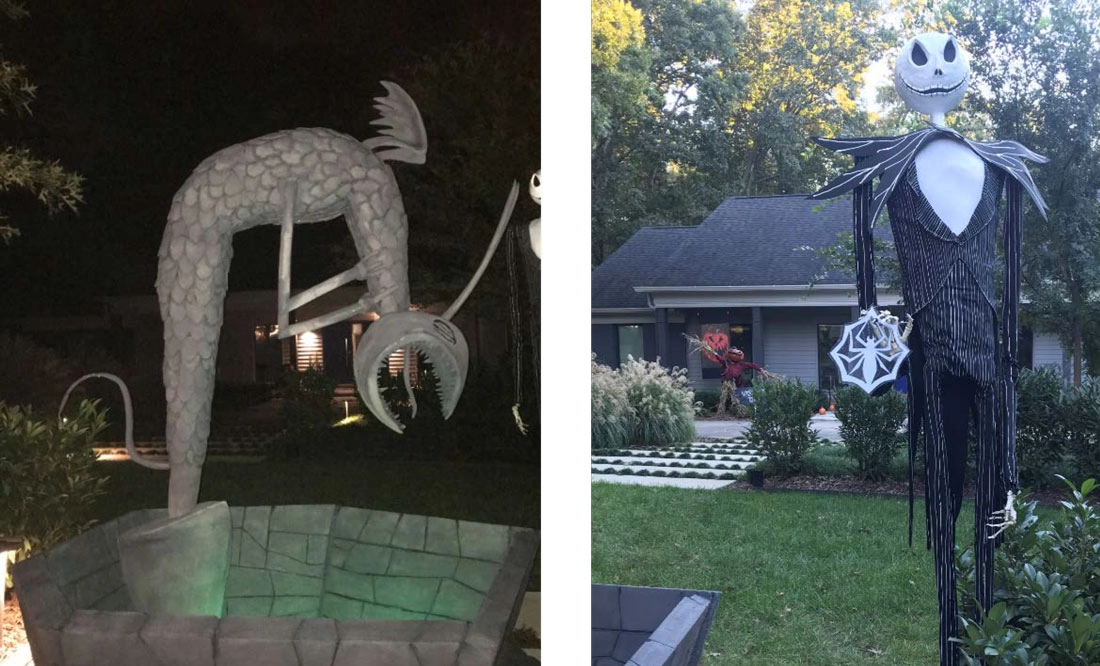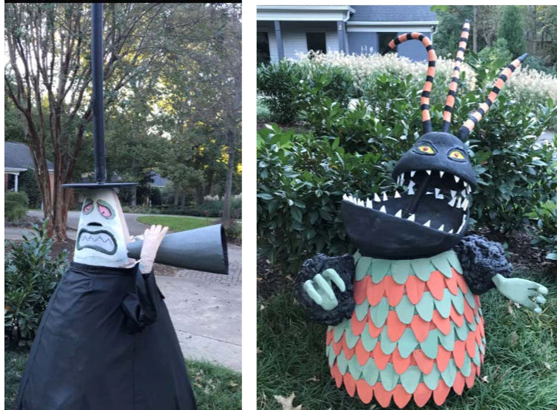 Amazing what you can do with imagination, EPS blocks, a hot knife and paint. Our customer in Charlotte North Carolina created these masks and outdoor Halloween ”decorations” from blocks of 1 lb density EPS using a hot knife and hot wire kit. The scary Halloween decorations probably kept the young ”trick or treaters” away after dark.