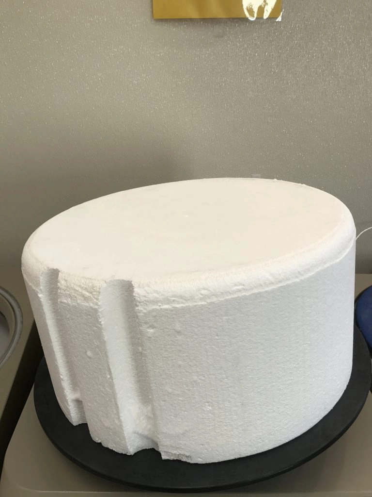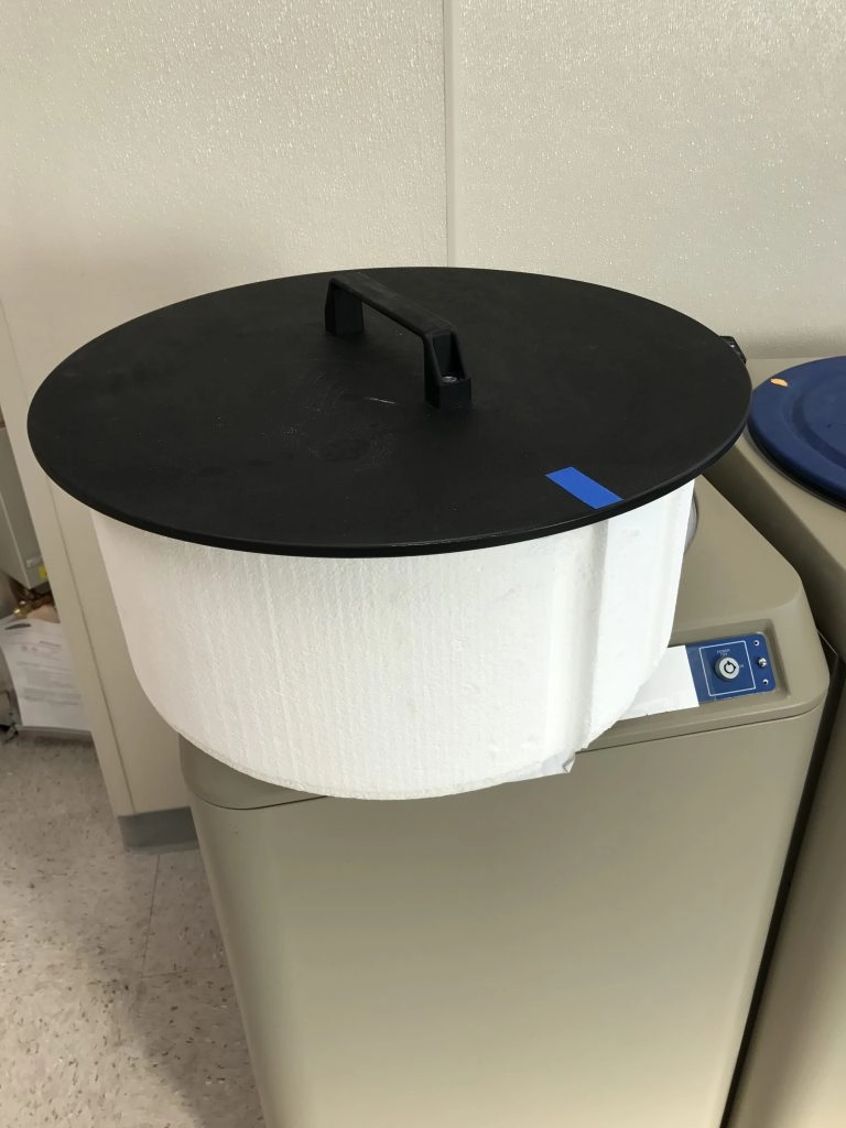 Everyone knows that EPS Foam is a good insulation material, but this is the first time we had seen it used for this application. When our customer in Virginia needed a way to better insulate the lid of their cryogenic tanks, they contacted Universal Foam Products to provide a solution using 3 lb density EPS 9” thick and custom cut to fit the top of the tank. The high R-Value EPS provided a snug seal and gave them the thermal value they needed.