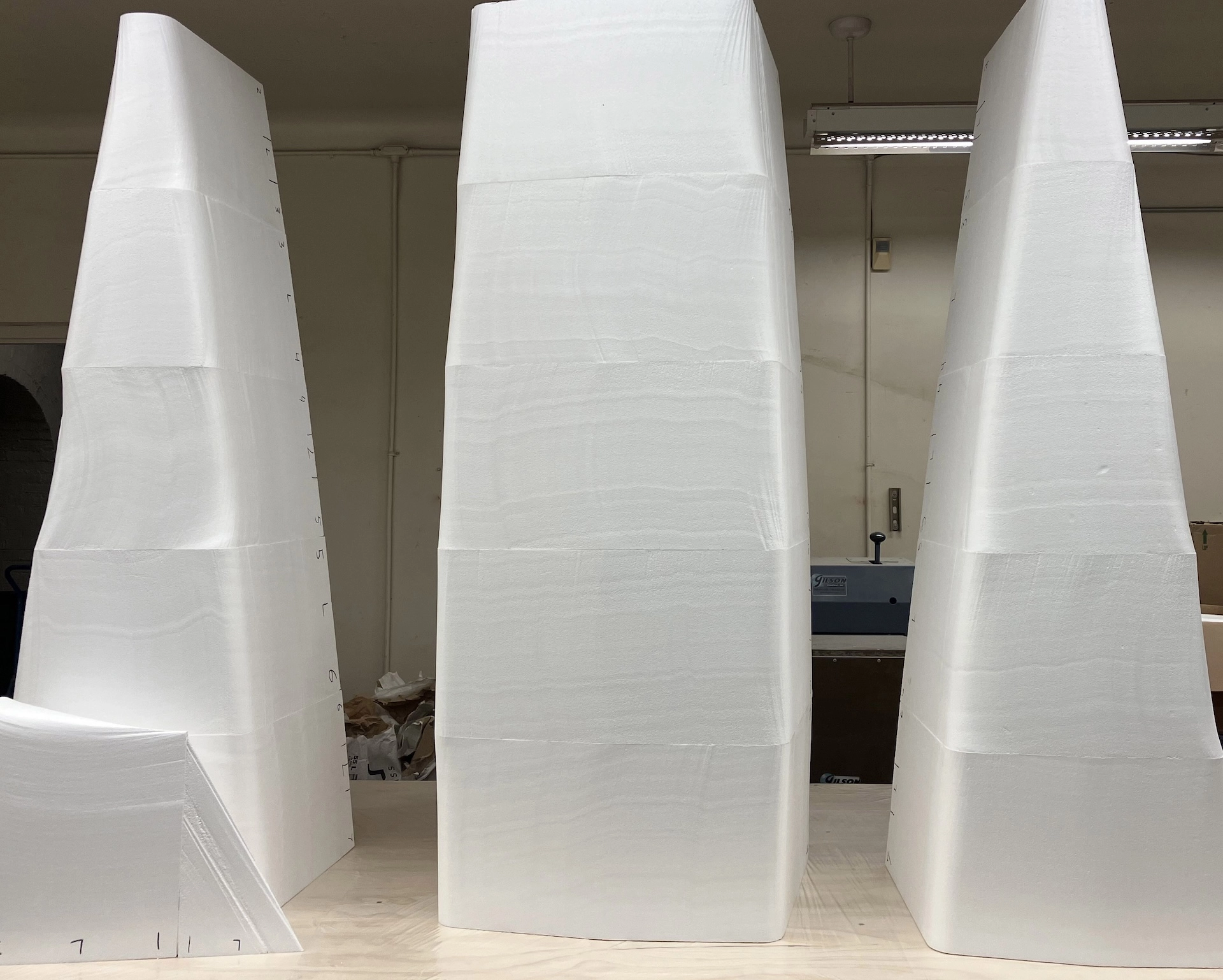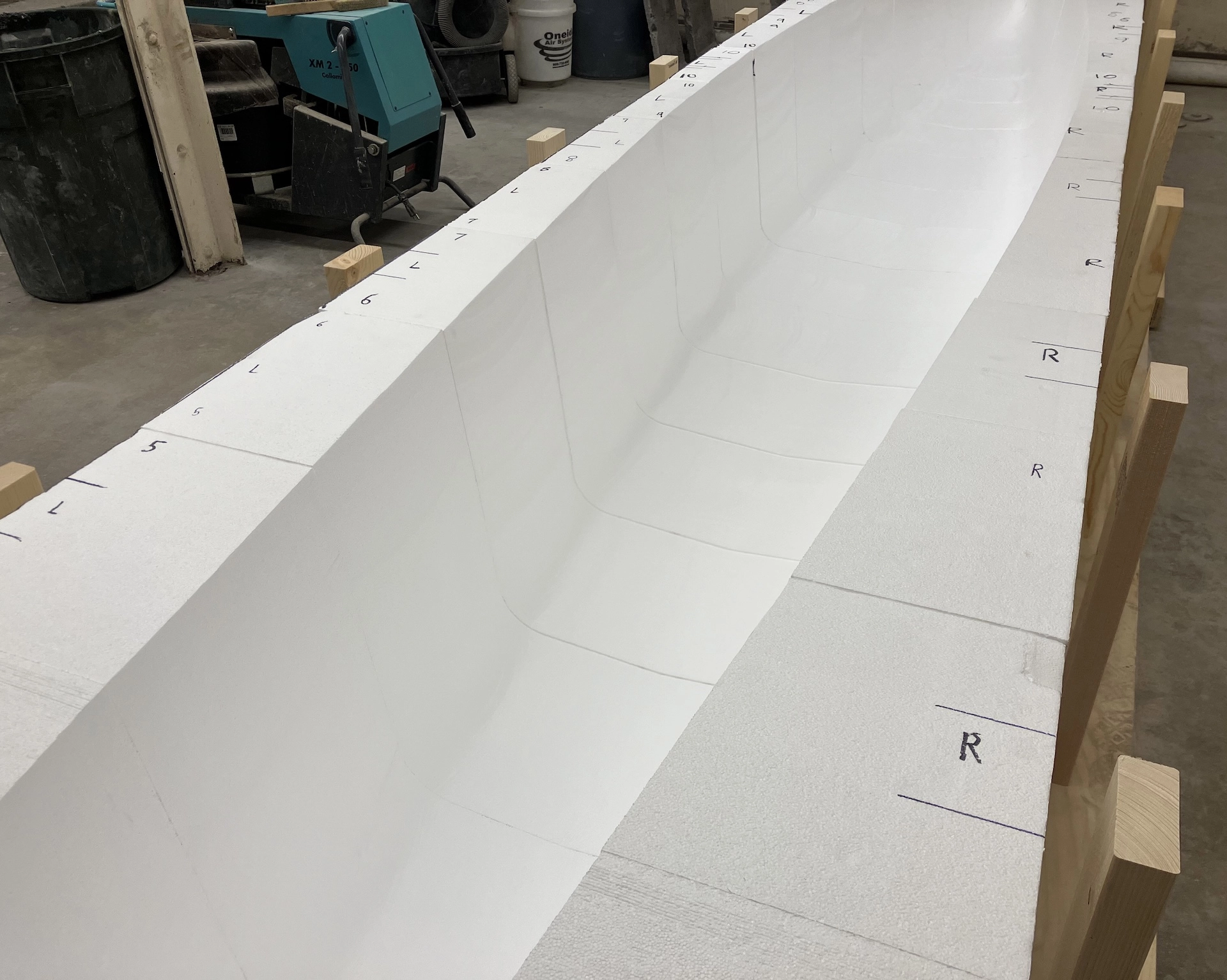This university in Troy, NY, sought assistance in creating a 21-foot hybrid mold for ultra-lightweight concrete casting. With a limited budget and a tight deadline, they opted to purchase 16 EPS Foam blocks measuring 12" x 24" x 36". The students used a hot wire to cut the individual blocks, which were then aligned and glued together to form the mold depicted in the attached images. The team secured third place in the canoe manufacturing process at the Upstate NY-Canada ASCE Student Symposium.