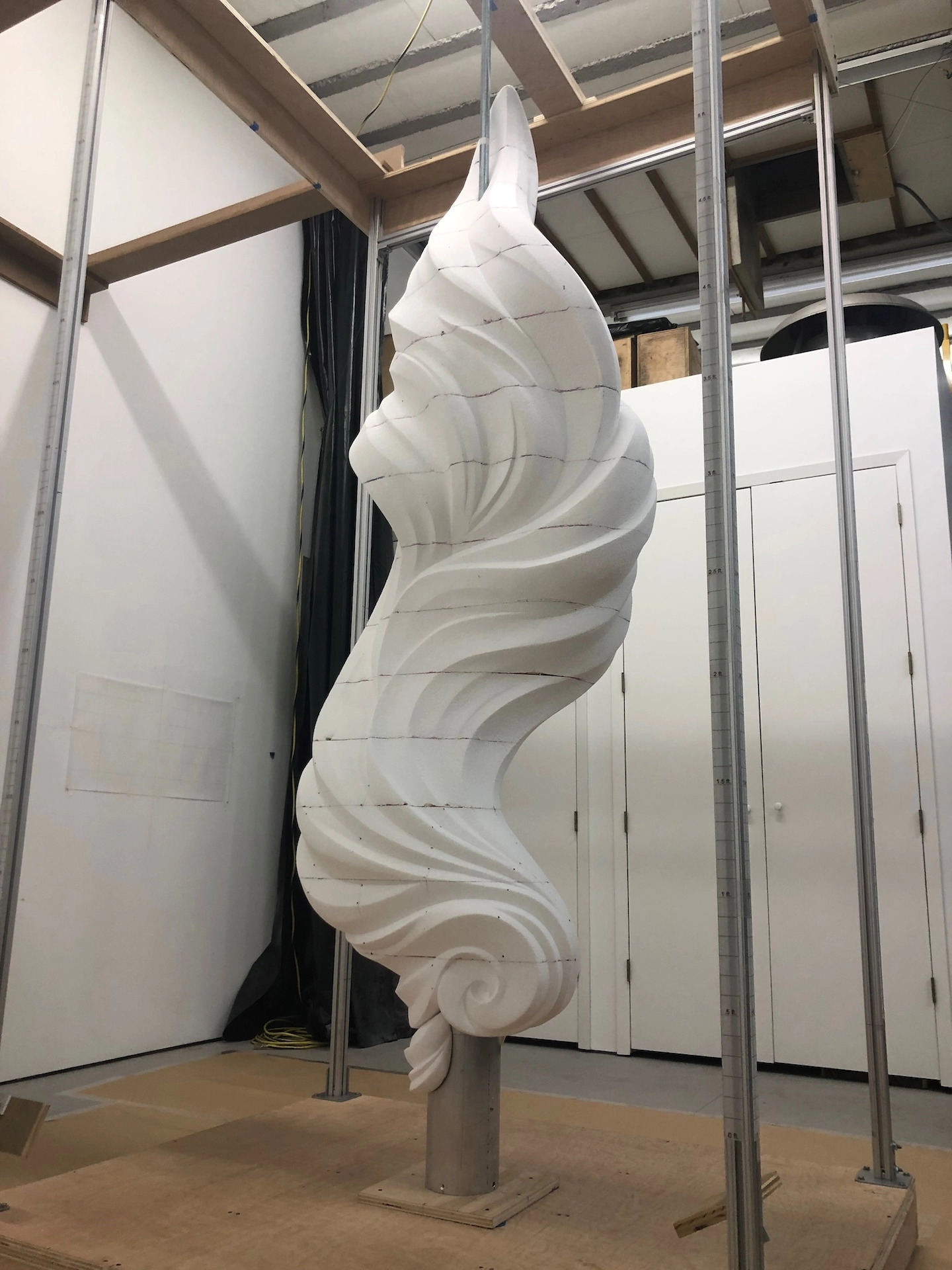 The foam design will serve as the pattern the foundry will use to create its molds. This project is intended for the plaza at Hampden House in Bethesda, Maryland, with installation planned for May 2025.
