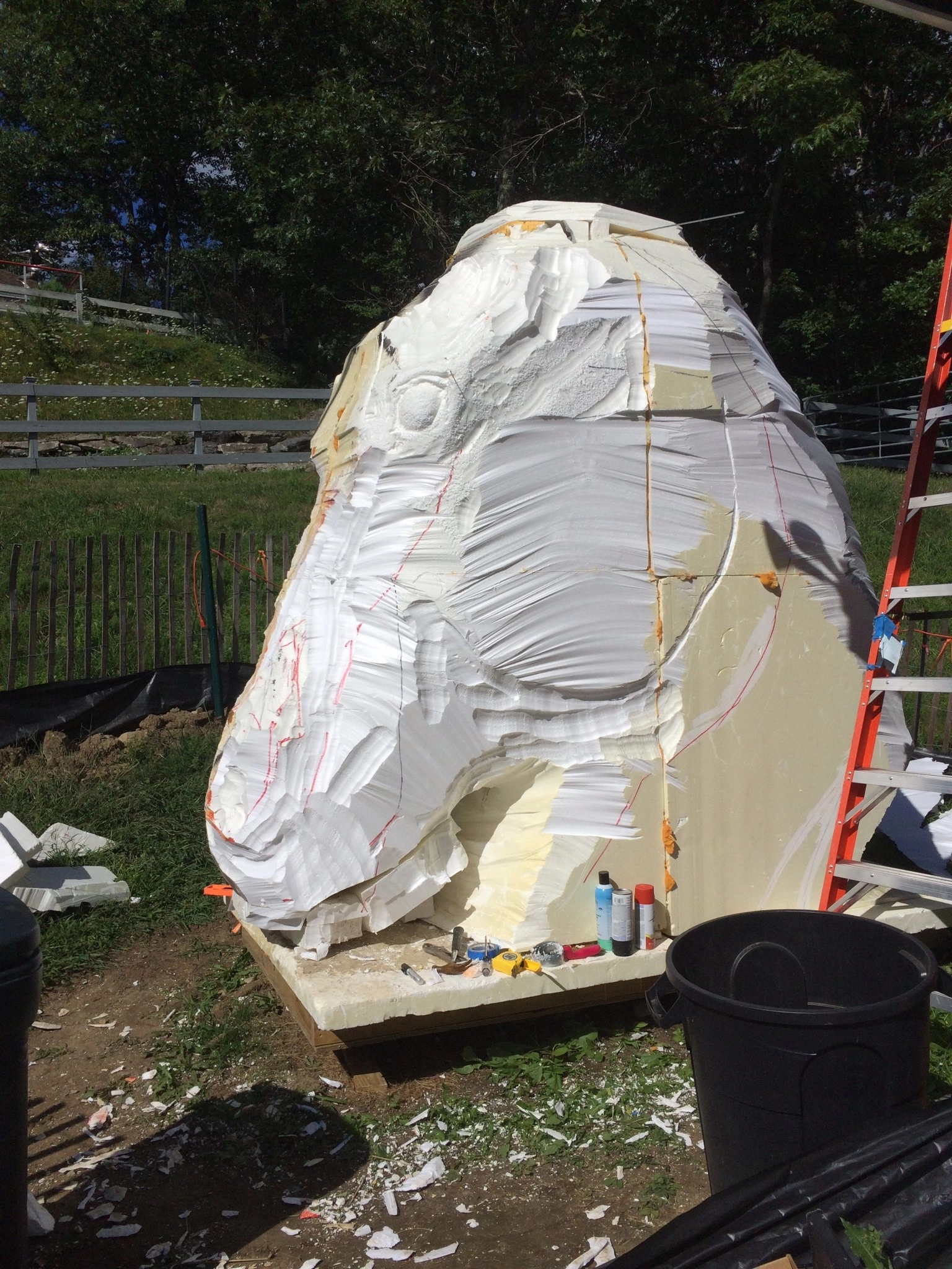 If you give this artist Large EPS Foam Sculpting Blocks and some Hotwire cutting tools, with their imagination they can create just about anything. This project was sculpted and created for personal use in Egremont, MA 01258. With the use of 3 large EPS Foam blocks, the horse sculpture stands at 10 feet tall. The foam was then coated with Hotwire All Purpose Foam Coat and an exterior acrylic paint was applied.