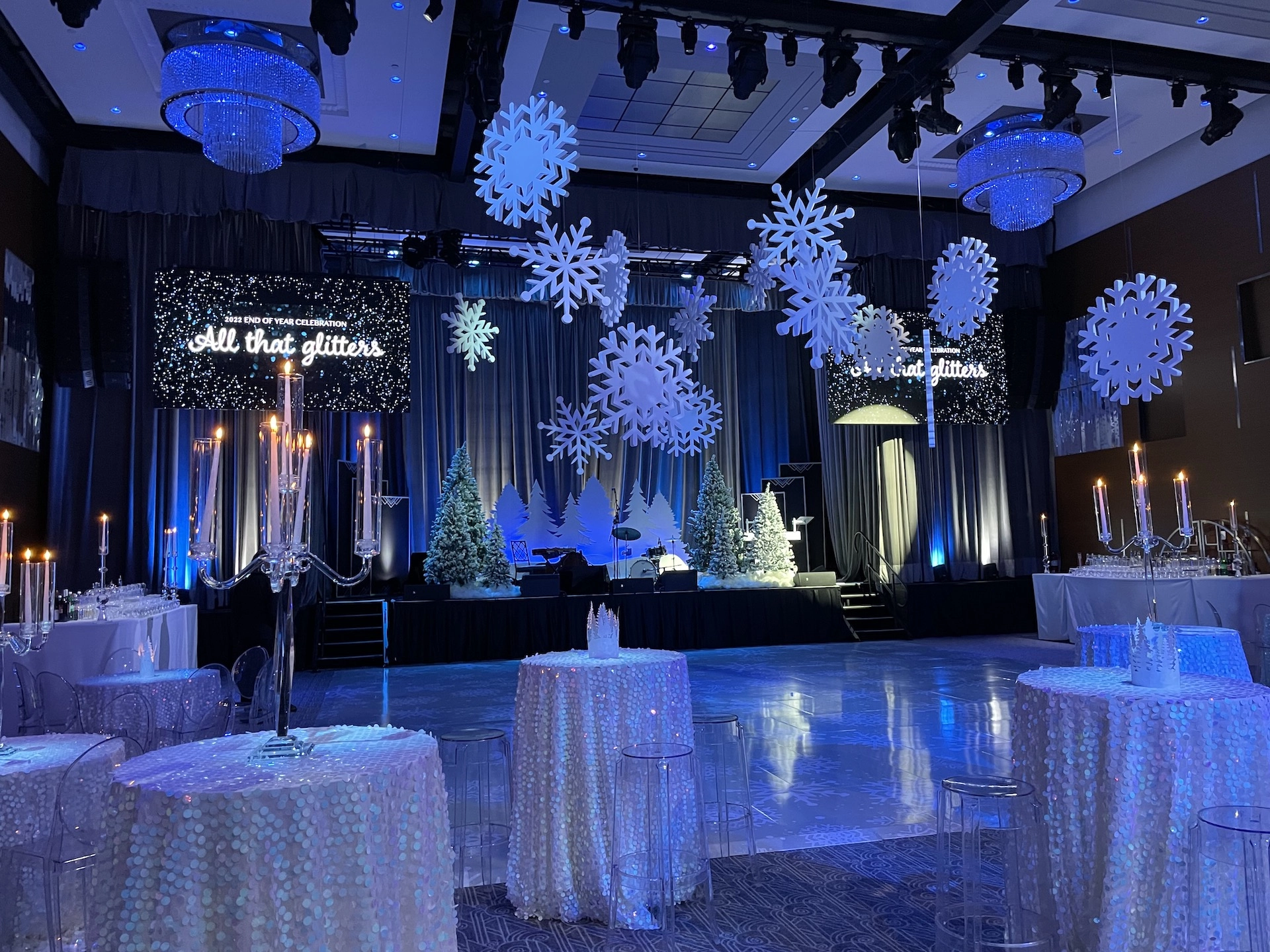 It is about that time of year to Deck the Halls! This design company used the expertise of Universal Foam Products to elevate a holiday bash for a Boston Consulting Group at New York City's Ziegfeld Ballroom. They purchased two different .9 lb Virgin EPS Snowflake Foam designs that were 42 inch diameter. These intricate snowflakes were suspended from the ceiling with delicate fishing line, adding a dash of sparkle and festive charm that undoubtedly sparked lively conversations among the guests igniting the holiday spirit. For your next event or holiday party, consider calling Universal Foam Products not only for snowflakes but also Foam numbers, letters, and all imaginative designs.