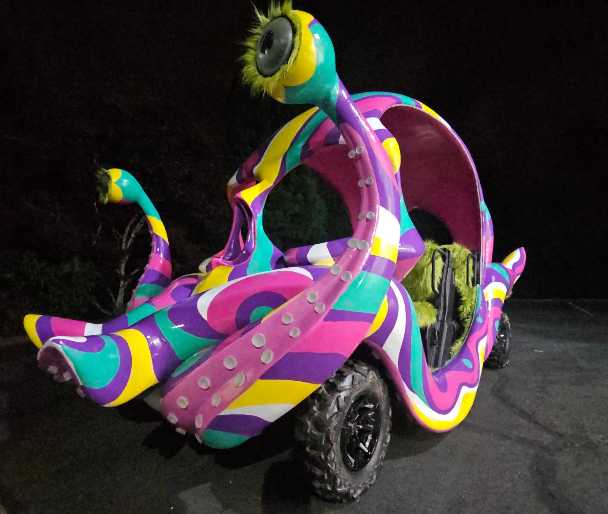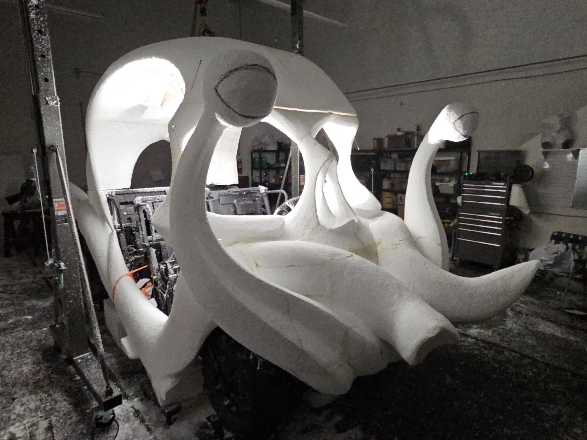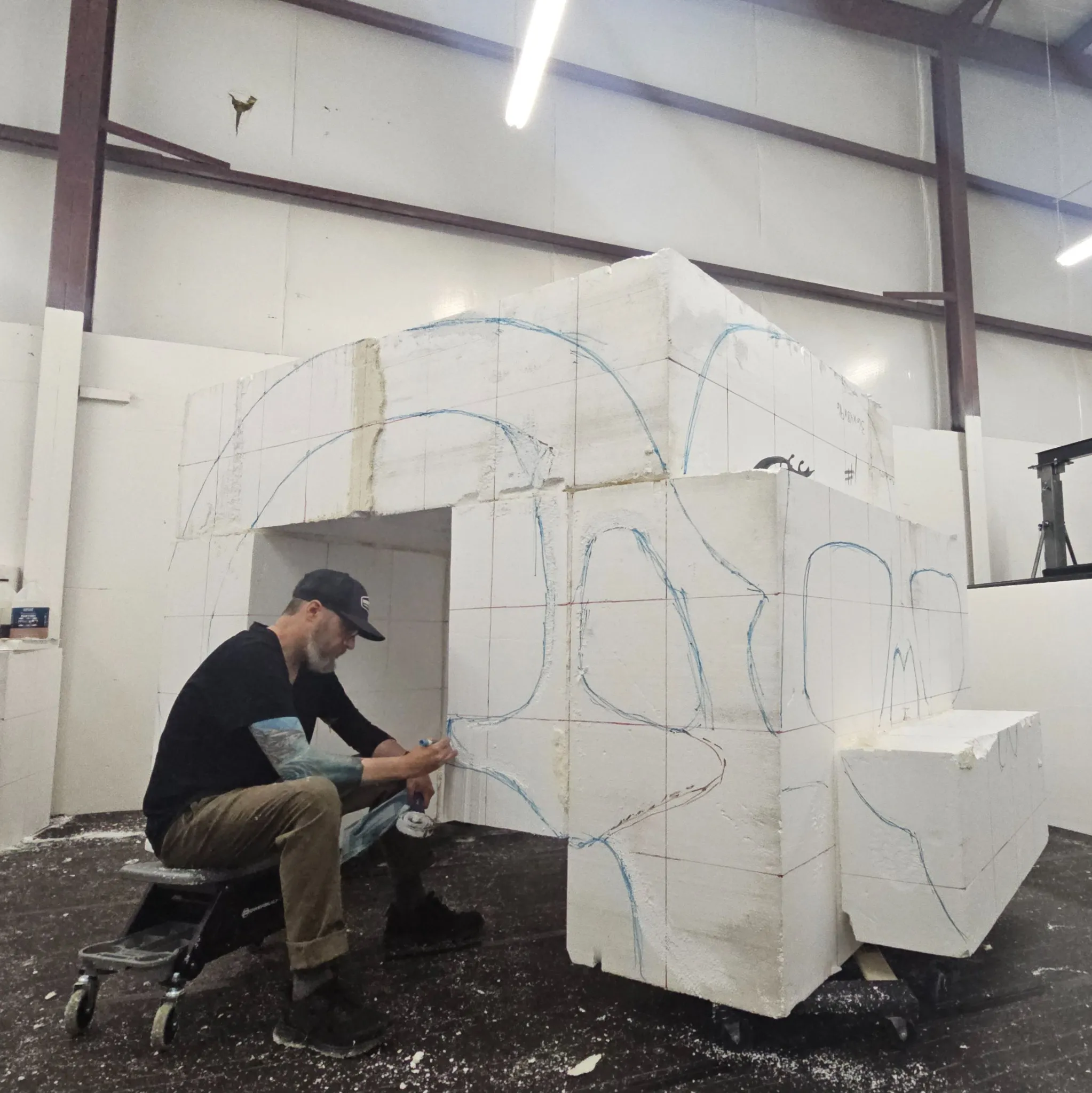 The artist sculpted the EPS blocks using a variety of saws, knives, and sanders to achieve the vehicle’s unique shape and design. Once complete, the foam surfaces were finished with layers of vibrant latex paint, giving the project its bold, eye-catching look that stood out at the festival.