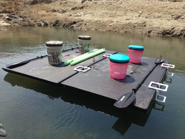 6” x 48” x 96” EPS of a 1.35 lb density was used for these prototype light weight rafts produced in Hughson, CA 95236 . The 6” x 48” x 96” panels were coated with a polyuria coating and outfitted to accommodate some basic gear. The rafts, called Feather Rafts are stable and can carry a substantial load.