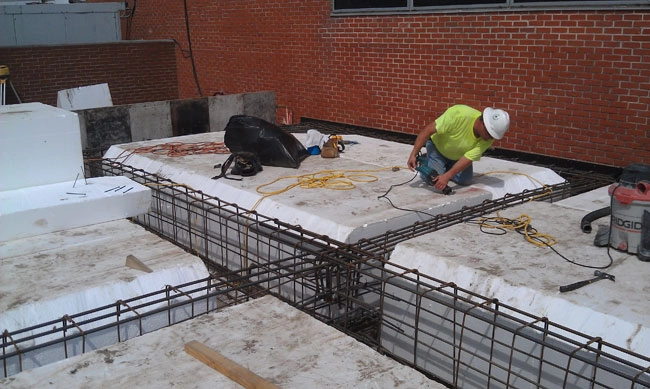 on schedule. The project called for a slab to be formed over the EPS15 geofoam creating reinforced knee walls in the voids between the sections