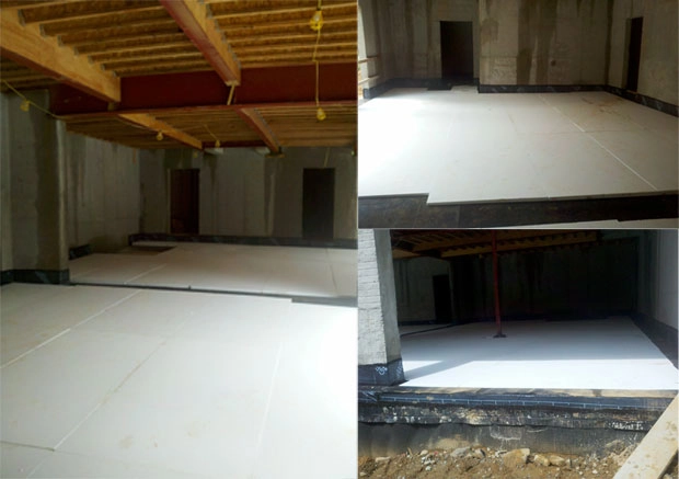 When Graham Builders of McLean, Virginia needed to taper a garage floor, they contacted Universal Foam Products to provide tapered EPS for the project. The garage had three sections, all of which needed to taper towards the overhead doors. Universal provided EPS39 geofoam in tapered pieces that were precut and labeled. Gibson Builders was very pleased with the ease of assembly and with the layout drawing showing the location of every piece