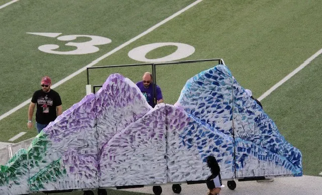 Using the hot knife, the students and staff sculpted the EPS sheets to resemble colorful mountain formations, bringing creativity and visual excitement to their field performance. The lightweight EPS foam was then securely attached to the marching band stages, adding very little weight while providing a dramatic visual effect.
