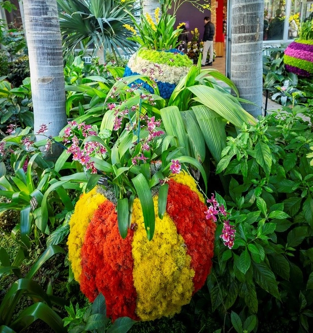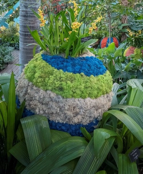 This Chicago based Botanical Garden at the Orchid Show of Wonders was looking for Expanded Polystyrene foam spheres to enhance their display. They contacted Universal foam Products for several cases of our 24” and 30” diameter foam spheres. The spheres were creatively used to conceal planters on stands, with the tops cut out to accommodate the orchids. Dyed reindeer moss was then pinned onto the foam for a striking effect.