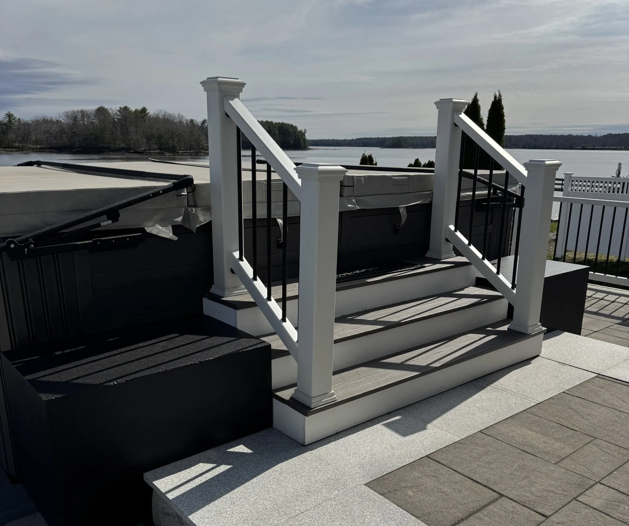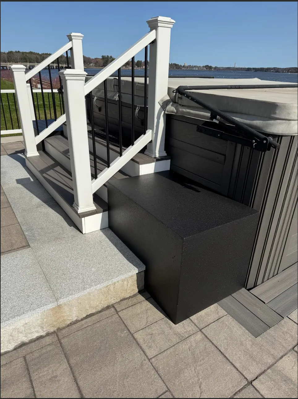 A customer purchased large Expanded Polystryrene Foam blocks from Universal Foam Products to use as a “safety bumper,” filling the gap between their hot tub and the entry stairs. The lightweight Foam provided a perfect custom fit and added an extra layer of safety. After painting the blocks black to match the exterior of the hot tub, the finished look blended in seamlessly with the surrounding area.