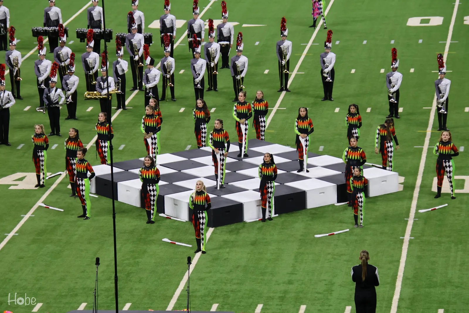 Universal Foam Products supplied the Lakota East High School Marching Band in West Chester, Ohio with 1.8 lb Virgin EPS blocks measuring 18” x 36” x 36” for their 2025 production, “Chaos in the Court.” The blocks were painted black and white with water-based latex paint and used as part of the show’s dynamic field design. The lightweight yet durable EPS made setup, transport, and performance changes simple throughout the marching season.