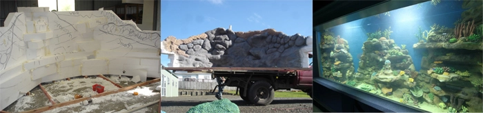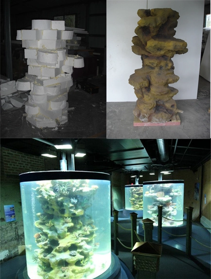 Marinescape specializes in designing and building aquariums all across the world and recently The Greater Cleveland Aquarium opened in January 2012. Marinescape ordered 2lb density EPS Foam from Universal to complete the final touches on a few of the 3d aquarium backgrounds. It is amazing what you can do with the EPS Foam and a little creativity. Take a look at the pictures to see how the Foam is transformed into an underwater habitat.