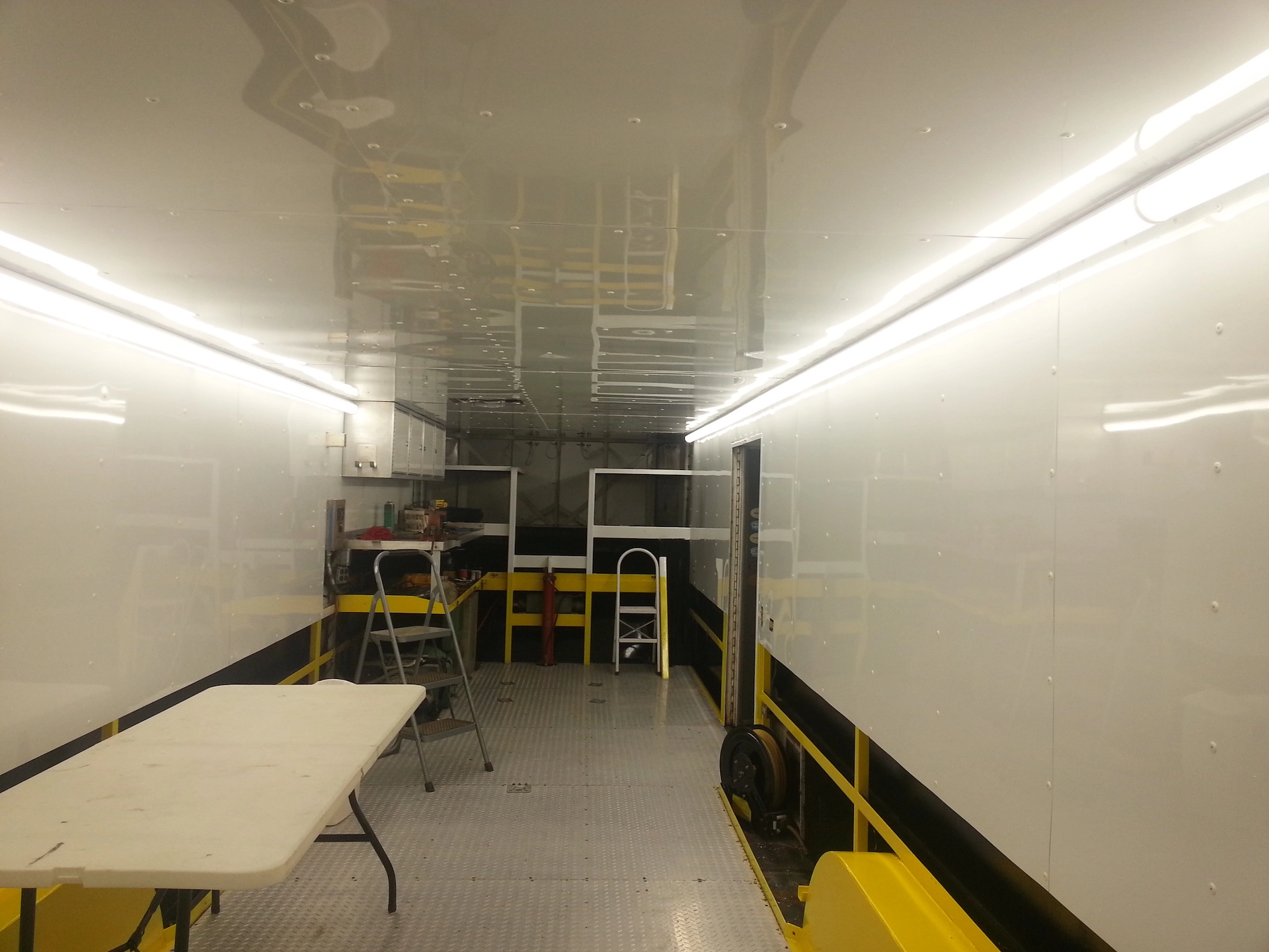 This customer in Elizabeth City, NC had a 40 ft. gooseneck car trailer that he wanted to insulate. They checked with the building supply companies in the area for a Styrofoam board however they would have needed to purchase several layers to fill the voids in the walls/ceiling and the cost would have been out of their budget. They then found Universal Foam Products, who was able to guide them through the steps needed to order the proper material. The .9 lb Virgin EPS Foam was cut to size to fit into the voids. The job that would have taken days, took just a few hours. After the foam was installed, the customer covered the inside walls with gloss white aluminum sheets. The customer was super excited and the foam was perfect for the application.