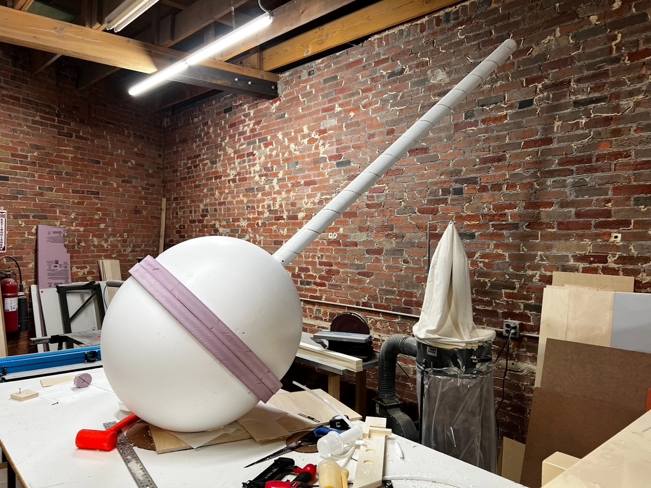 The TWO x TWO is a contemporary art auction benefiting amfAR and the Dallas Museum of Art. This was the 23rd annual and was held at the Rachofsky House in Dallas, Texas. This artist designed a Lollipop Party prop for the after party of this amazing charity event with the help of our 30” diameter hollow foam ball. The customer filled each hollow foam ball half with spray foam and used a piece of Owens Corning foam insulation as the ring. The foam was then hard-coated to give this party prop much more durability.