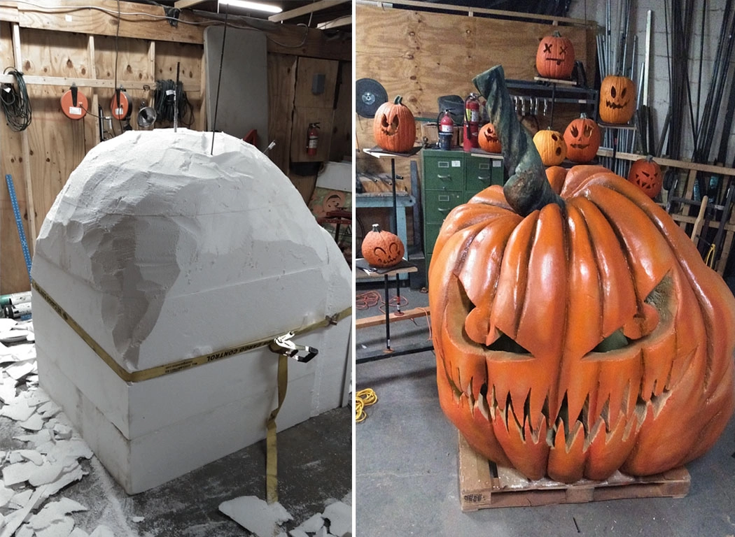 Pumpkin carving out of EPS has become very popular over the past 10 years for both commercial and front yard displays. They can be carved with reciprocating saws, hot knives, rasps and a variety of other hand tools. The are a variety of coatings available to keep your sculpture protected for years to come.