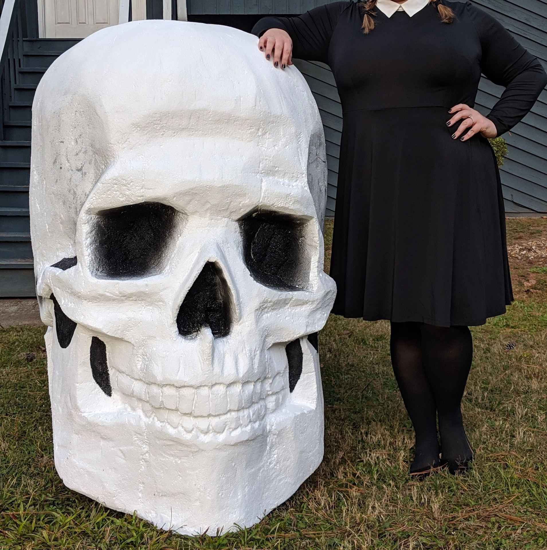 This customer in Kennesaw, GA created a 5 foot foam skull crafted from 1 block of Expanded Polystyrene for Halloween/Dia de Los Muertos. They carved the foam using hand saws and a sander. They then used a standard acrylic paint applied with a sprayer, providing a smooth finish. This will surely scare some Trick-or-Treaters.