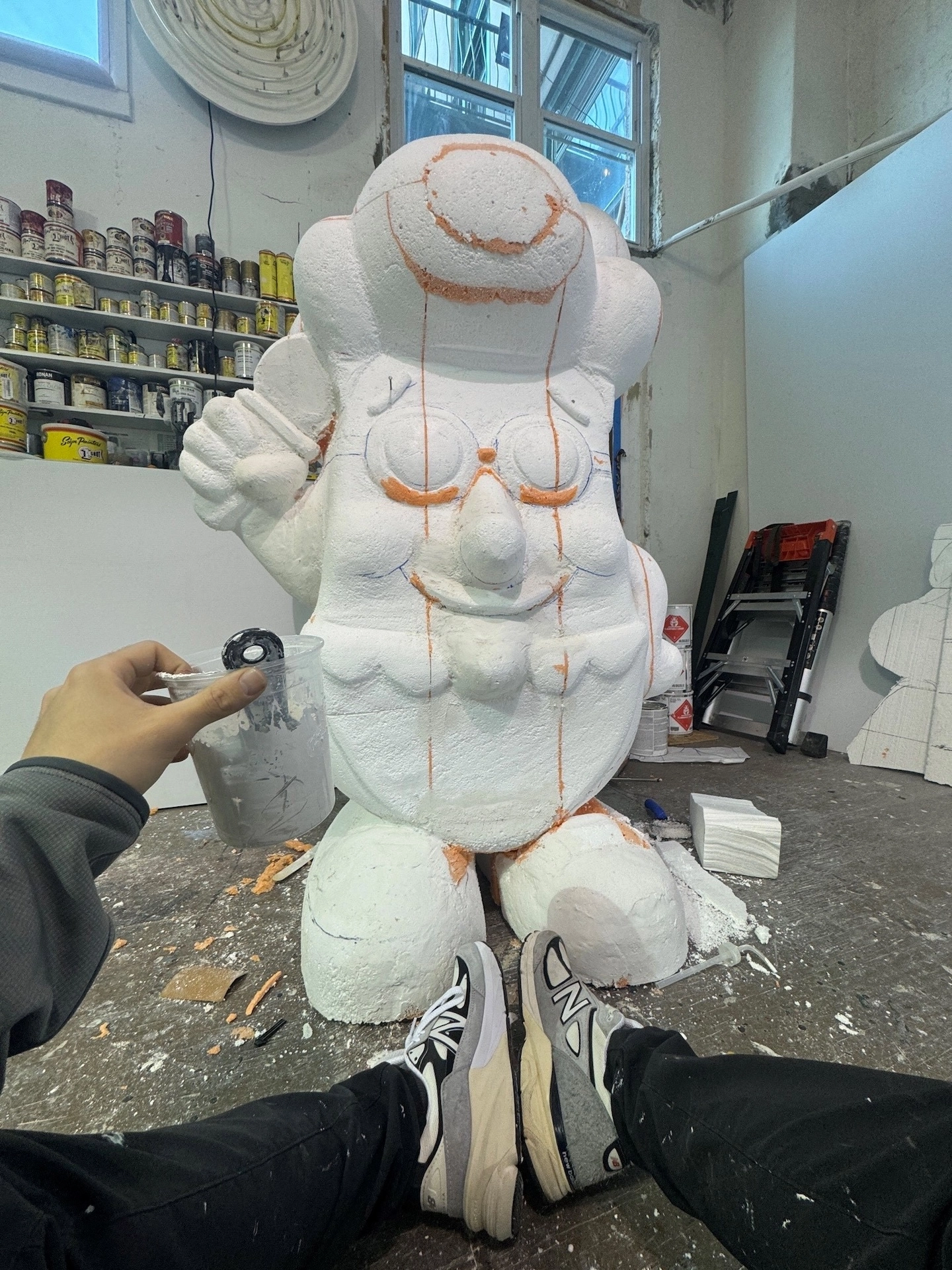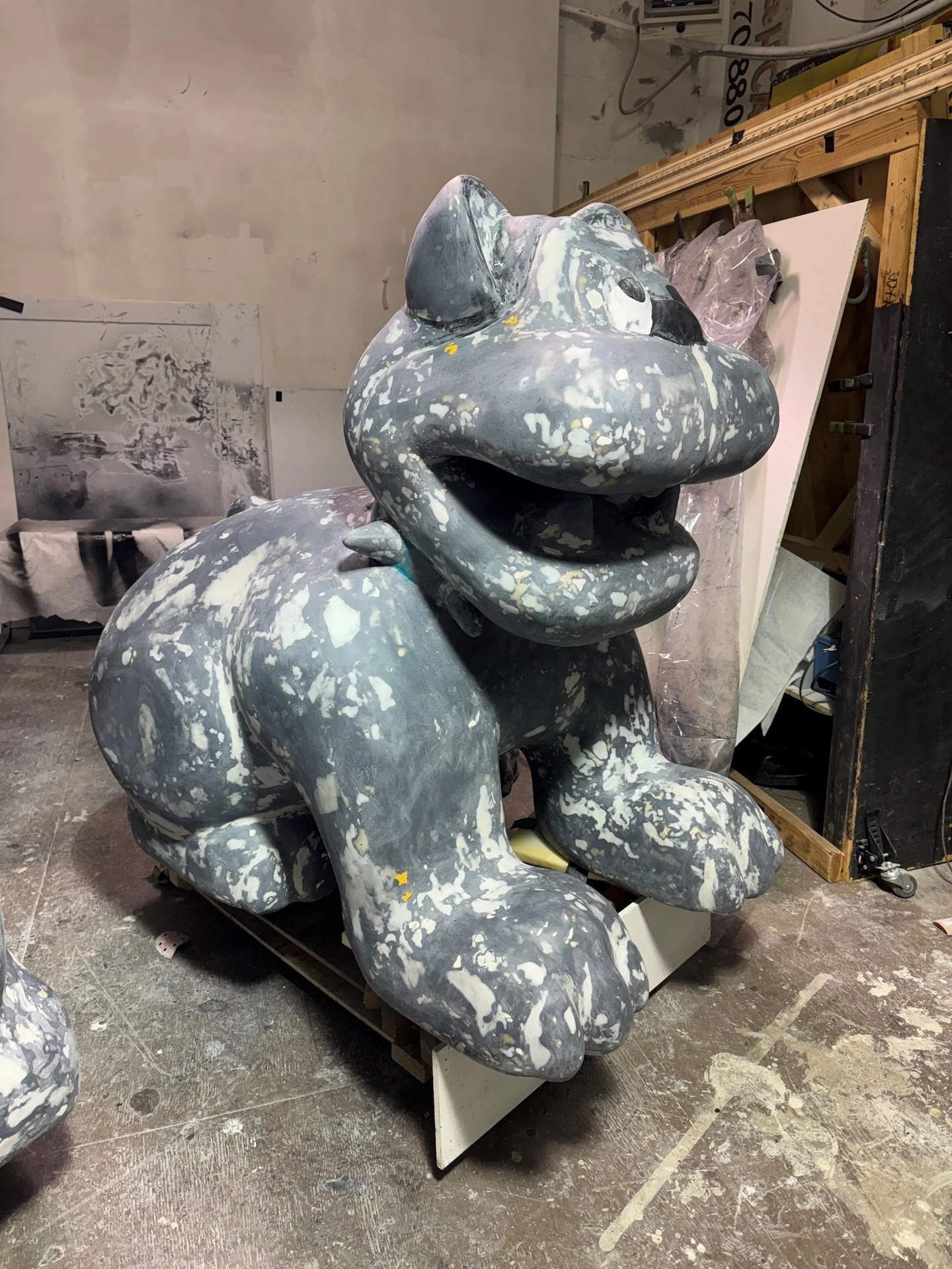 This artist and sculptor from Jersey City, NJ, utilizes Expanded Polystyrene Foam Blocks to transform drawings into lifelike sculptures. Employing his exceptional artistic skills and a variety of cutting tools, he begins shaping the foam with a hot wire. The majority of the sculpting is done with a brush designed for shedding horse manes, while the finer details are achieved using different wire brushes and sanders.