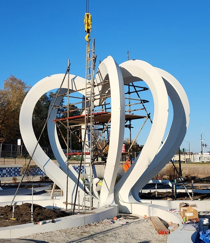 Expanded Polystyrene Foam blocks provided by Universal Foam Products were used to create a large, multi-section heart sculpture for the City of Waukesha, WI. Unveiled on November 21, 2024, this meaningful memorial honors the victims of the tragic Christmas Parade attack in Waukesha on November 21, 2021.