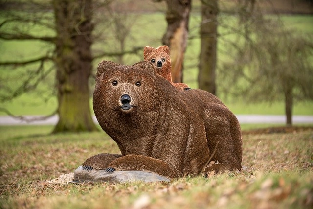 Lisa and Robert Ferguson, artists in Alameda, CA used .9 lb density EPS Blocks to sculpt these incredible pieces of art. The first is a life sized carving of a mother grizzly bear and her cub called 'Mum'. This was hand carved from Large EPS Sculpting Blocks, and was then covered with cement and over 50,000 pennies, which gives the impression of bear fur. When dried to concrete the art is extremely durable and a joy for people to touch and explore. This was built for a Burning Man art exhibition in England at Chatsworth House near Manchester. It will be returning to the USA in the winter.