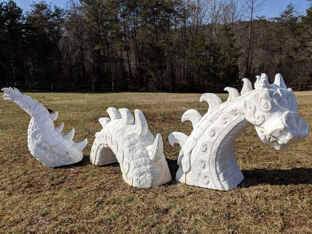 After considering what materials to make the sea serpent out of, rejecting wood, papier Mache, polymer clay, I decided to carve one out of Styrofoam. I wanted three rather large blocks to work with. Finding them was a challenge; either too small, odd dimensions, or just way too expensive, not to mention the cost of shipping three large blocks. Then I found John Tamburo of Universal Foam Products. He helped me with the dimensions. Three blocks 36” X 36” X 24”. Then how to acquire them? Universal Foam Products had a warehouse in High Point, NC, only about an hour from me. The back of my pickup filled with three blocks of ideas, I drove home excited to begin work.