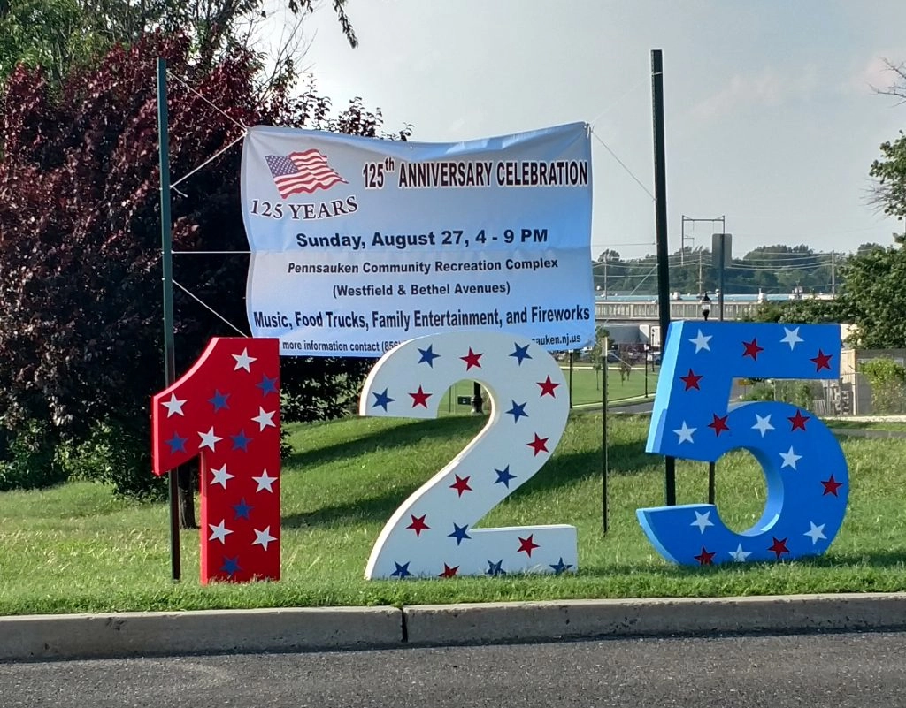 When the Township of Pennsauken, NJ celebrated their 125th anniversary they wanted to announce it in a big way for everyone entering to see. Universal Foam Products provided 4’ tall EPS letters that people from the anniversary committee painted and decorated and put on display along with their banner on the highway coming into town. They did a great job turning the white EPS letters into a colorful, memorable sign.