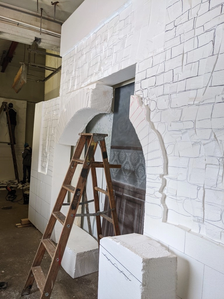 Expanded polystyrene is one of the most commonly used materials for creating complex, realistic looking theatrical props for everything from amateur productions to large budget professional plays and movies. It is available in sheet or block form as well as complex shapes. EPS is lightweight, weighing less than one pound per cubic foot up to three pounds per cubic foot, making large props easy to maneuver on stage. It can be coated with almost any material including paints, stucco, concrete. Wood and metal panels can be easily attached to EPS blocks or sheets. It can be carved with an electric hot knife or commonly used tools and utensils such as knives and saws. It is strong enough to be walked on and carry substantial loads.