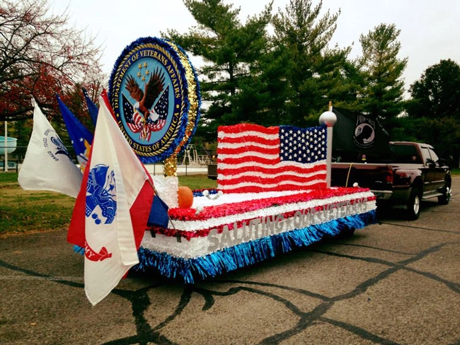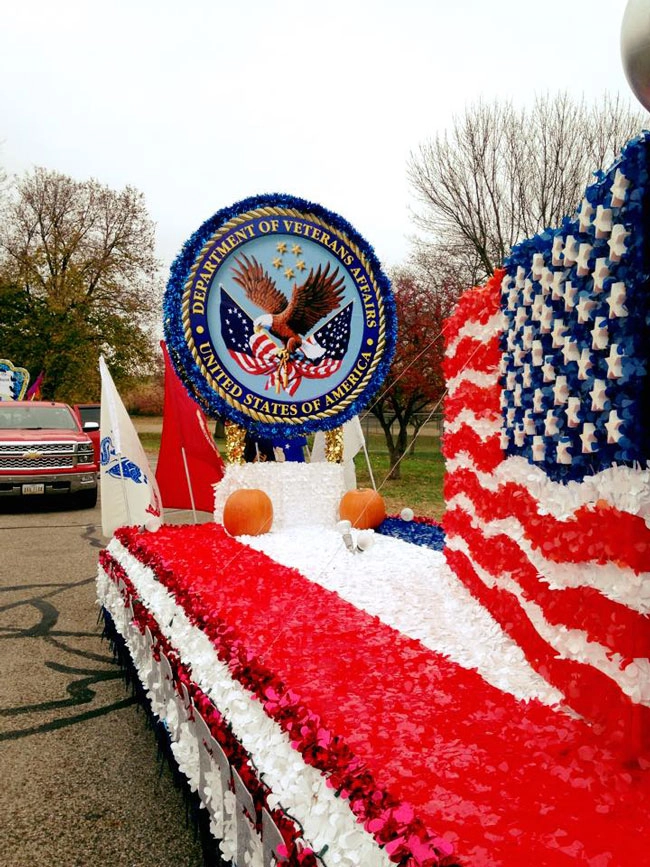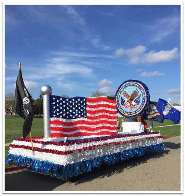 1.5 lb Virgin EPS 8” x 48” x 87” was used to create this American flag for a parade float produced by the VA Medical Center in Chillicothe, OH. The flag was pre-cut by Universal Foam Products and decorated by the VA Medical Center.
