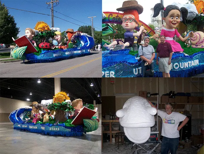 Custom panels and shapes created using STYROFOAM™ Brand foam and EPS (expanded polystyrene) are used for creating parade floats for businesses, schools, churches and other organizations. STYROFOAM™ Brand foam panels are typically used where the panels need to be thin and still very strong. EPS is used to create 3 dimensional shapes in applications where much larger panels or large blocks are required. Platforms can be made to stand on and seats can be created also.