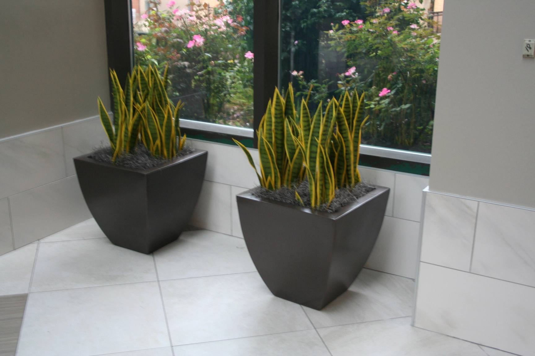 Recycled expanded polystyrene (EPS) with a density as low as .75 lbs per cubic foot makes excellent void fill for planters. The EPS is light weight, inexpensive and very easy to work with. Thick sheets can be cut with a saw or hot knife and smaller sheets can be snapped to size. For his particular project the artificial plants were set on .9 lb recycled EPS.