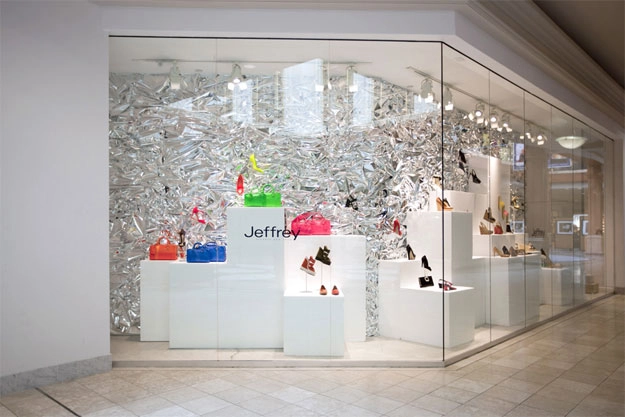Using STYROFOAM™ or EPS Foam blocks for retail window display is a great idea. One of our client used EPS Foam blocks in a window display in the Jeffrey Atlanta store which offers High end designer clothing, accessories and jewelry and also the 20th anniversary of Christian Louboutin display in the store. STYROFOAM™ brand foam and expanded polystyrene (EPS) blocks and shapes make very economical and elegant retail displays. The material used in the natural state as these EPS blocks were or they can be coated or laminated with a variety of finishes to achieve the look of any desired material. Large letters and number can also be created.
