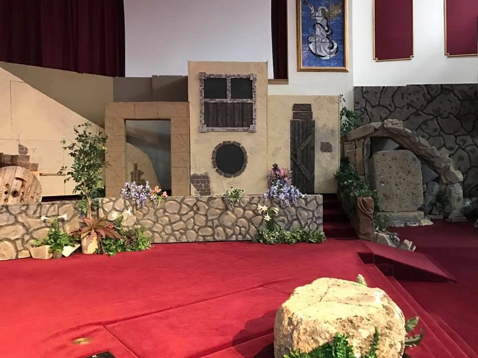 150 Sheets of .9 lb EPS 1” x 48” x 96” were used to create these walls, rocks, and other scenery props for an annual Easter play in Arlington, TX. A dedicated group of talented people used hot knives to carve the foam, heat guns to create the texture, and then paint for the finishing touches.