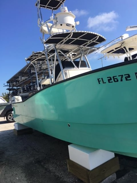 This boat in Apollo Beach, Florida sits on 4 blocks 20” x 24” x 24” of 1