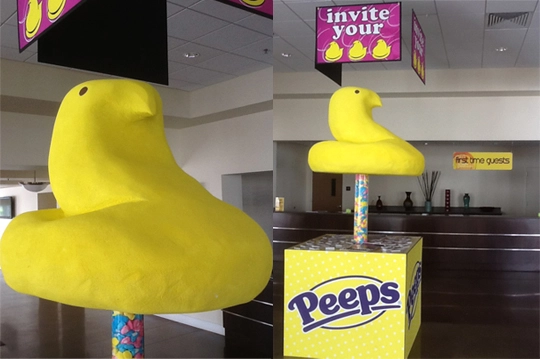 http://www.cbglades.com in Pompano Beach, FL used a 4′ X 6′ large piece of the STYROFOAM™ from Universal Foam to create two 4 foot tall “peeps”. We used them to help brand our Easter 2012 invite campaign (a campaign encouraging our people to invite friends & family) which we called “Invite Your Peeps”. The life-sized “peeps” were mounted at the top of a display where invite cards and posters were located. We ended up having over 13,000 people attend one of our Easter weekend services.