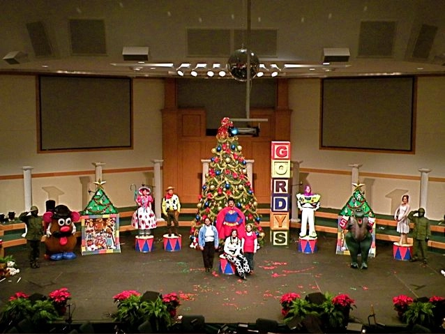 Our church produced a Christmas show entitled “The Gift.” The storyline followed the adventures of a group of toys in a toy store at Christmas time. They all wanted a home and were eventually purchased by a man and his granddaughter to give to an orphanage. The oversized drums and the giant building blocks were constructed out of STYROFOAM™ from Universal Foam. They were a huge hit with all the kids! Thank you Universal Foam!