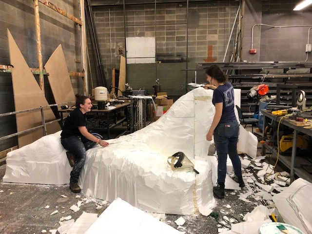 Light density EPS blocks of various sizes were used by the West Virginia University School of Theatre & Dance to create the set for their production of Cloud 9. The blocks were shaped using a hotwire bow cutter, hand saws, files and sand paper.